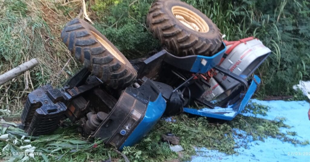 Segundo as informações apuradas, o operador realizava atividades em uma propriedade quando perdeu o controle da máquina. O trator acabou tombando e despencando por um barranco, resultando em danos significativos ao equipamento.