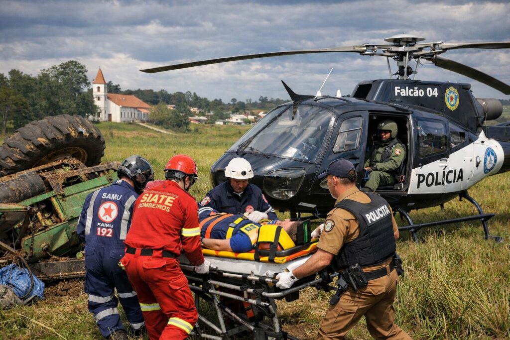 Adolescente fica gravemente ferido após acidente com trator e é levado de helicóptero em São José dos Pinhais