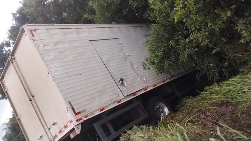 Apesar do susto e do impacto da saída de pista, o condutor não sofreu ferimentos. O acidente resultou apenas em danos materiais no caminhão.