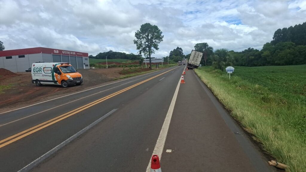 Apesar do susto, a ocorrência resultou apenas em prejuízos materiais. O condutor do veículo, com placas de Cascavel (PR), não se feriu. O caminhão acabou parando parcialmente sobre o acostamento e em meio à vegetação às margens da estrada.