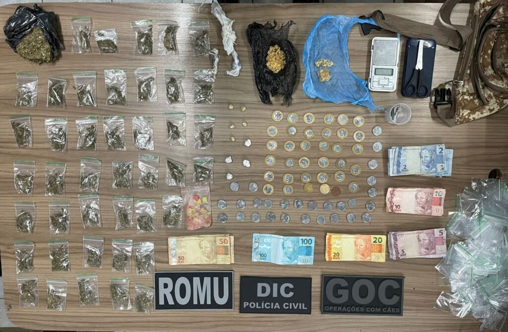 A equipe policial ainda recolheu quatro porções de cocaína, com peso aproximado de 3,7 gramas, e 84 comprimidos de ecstasy. Além das drogas, foram apreendidos objetos geralmente utilizados para o preparo e comercialização de entorpecentes, como tesoura, duas lâminas para fracionamento, embalagens plásticas, uma balança de precisão e dinheiro em espécie.