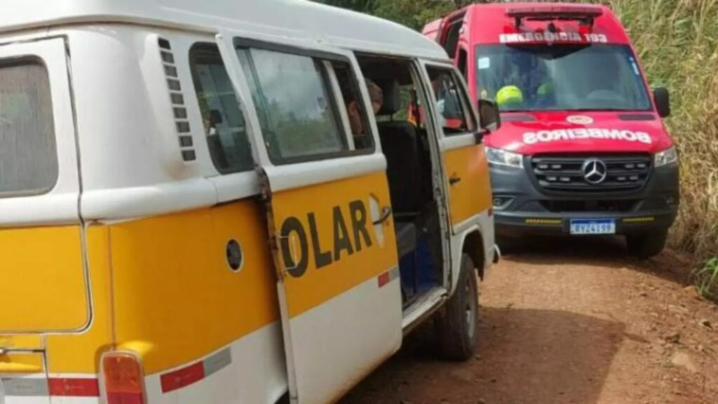 Quando os socorristas chegaram, encontraram uma Kombi branca utilizada para transporte escolar parada na estrada. A criança já estava fora do veículo, sentada no banco dianteiro, consciente e orientada. Apesar de não relatar dores no primeiro momento, os bombeiros identificaram escoriações pelo corpo durante a avaliação.