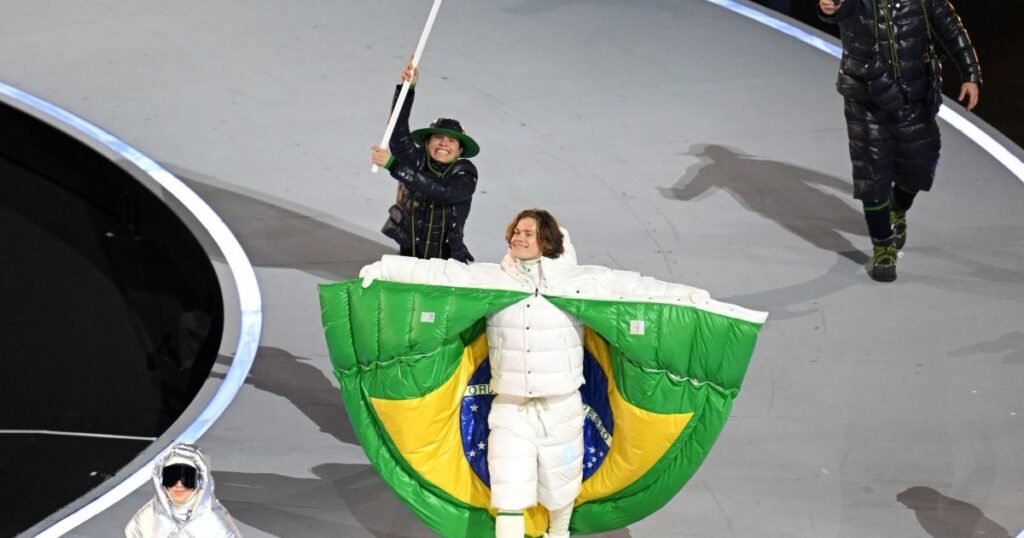 Promessa de medalha para o Brasil, Lucas Braathen foi o porta-bandeira da delegação brasileira na capital mundial da moda. Filho de mãe brasileira e pai norueguês, o atleta é um dos favoritos para um pódio inédito no Esqui Alpino. Em Cortina, Nicole Silveira, atleta da do skeleton, ficou com a função.