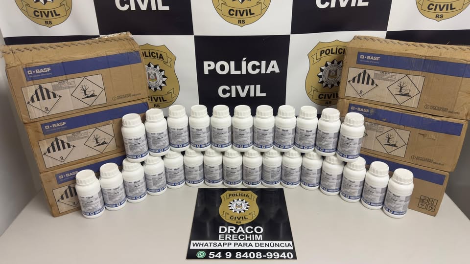 A Delegacia de Repressão às Ações Criminosas Organizadas (DRACO) de Erechim prendeu dois homens, de 42 e 43 anos, no fim da tarde de quinta-feira (12), suspeitos de envolvimento com receptação de defensivos agrícolas furtados. A ação ocorreu no município de Tio Hugo, no Norte do Rio Grande do Sul.
