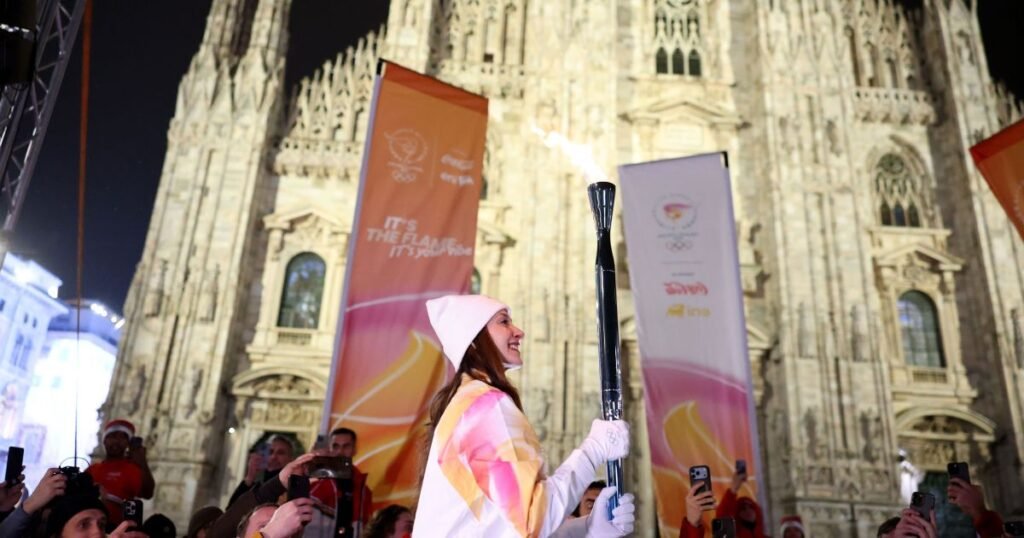 A tocha olímpica chegou nesta quinta-feira (5) em frente à imponente catedral gótica de Milão, entre aplausos e protestos, na véspera da cerimônia de abertura dos Jogos Olímpicos de Inverno de Milão-Cortina.