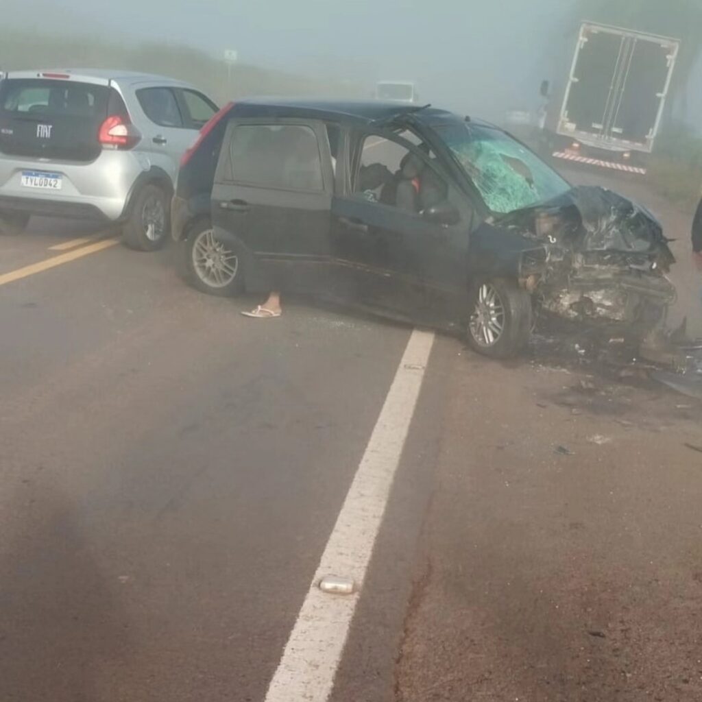 Um acidente com cinco vítimas aconteceu na ERS-480, na saída de Erechim rumo a Barão de Cotegipe, na manhã desta sexta-feira (13).