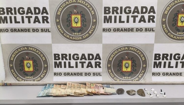 Durante a abordagem, os policiais realizaram buscas e localizaram diferentes porções de substâncias com características semelhantes a drogas ilícitas. Conforme informado pela Brigada Militar, foram apreendidas: