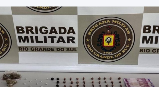 Suspeito foi flagrado com porções de maconha, cocaína, crack e dinheiro durante ação da Brigada Militar