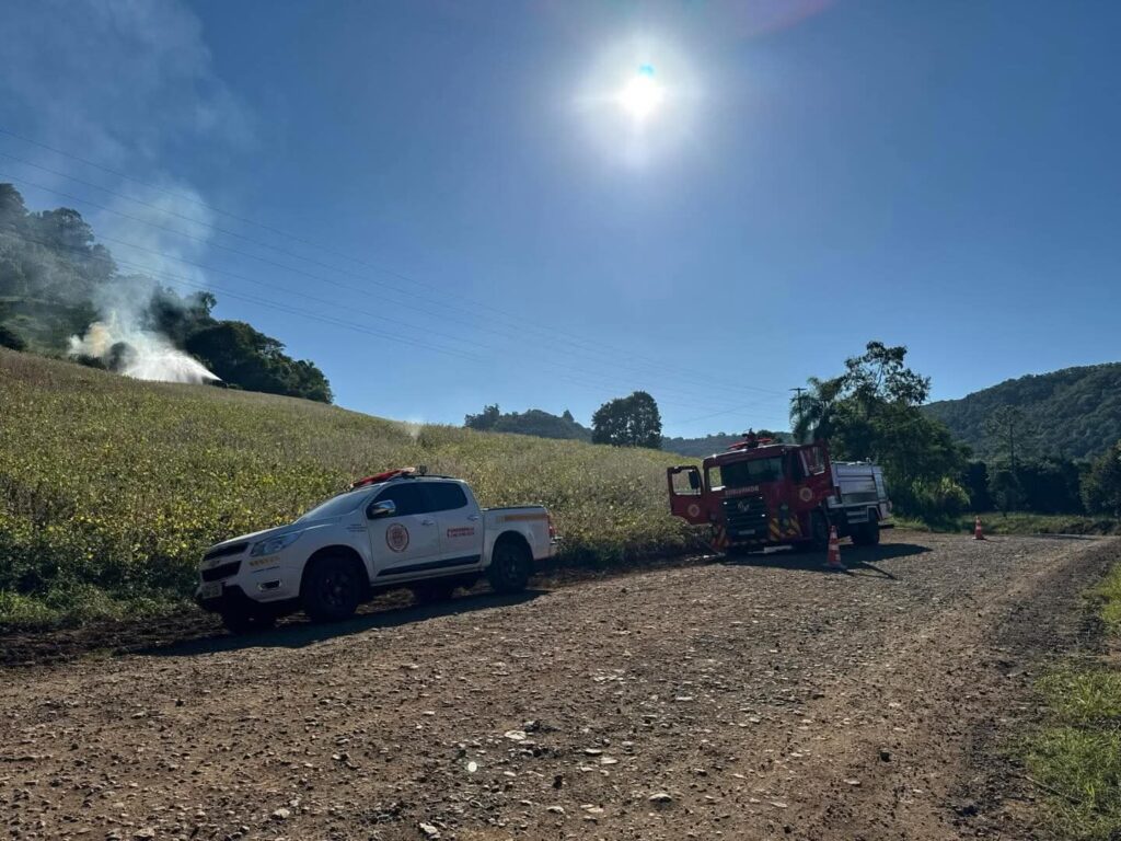 Equipes dos Bombeiros Voluntários do município foram acionadas e conseguiram agir rapidamente, controlando o incêndio antes que os danos fossem ainda maiores.