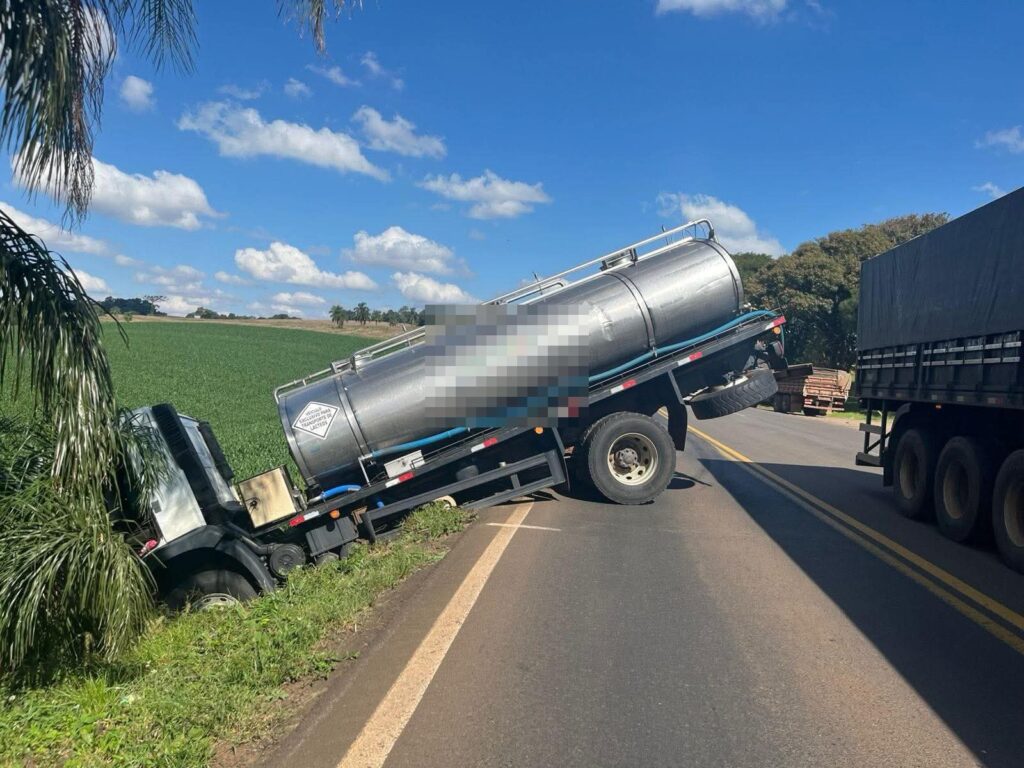 Uma saída de pista foi registrada há pouco na ERS-135, nas proximidades da empresa Olfar. O incidente envolveu um caminhão que transportava leite.