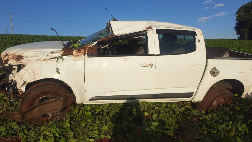 O acidente envolveu uma camionete S-10, que, por motivos ainda não esclarecidos, deixou a pista e acabou capotando em uma lavoura de soja às margens da rodovia.