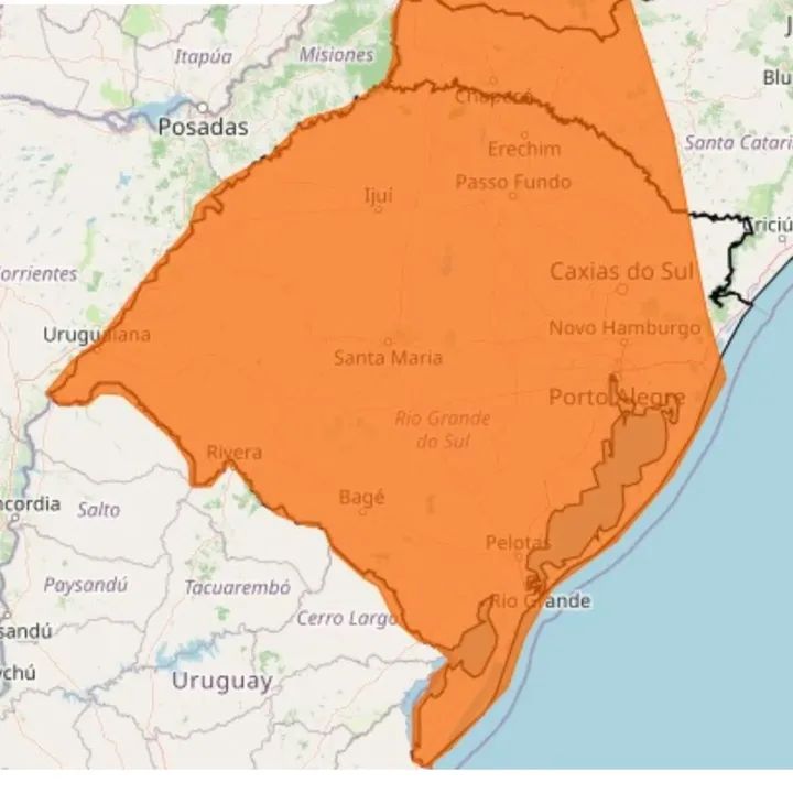 O aviso abrange os estados do Rio Grande do Sul, Santa Catarina, Paraná e Mato Grosso do Sul.