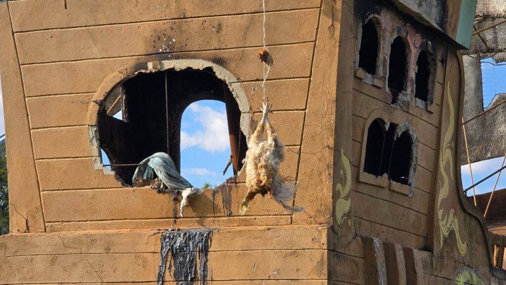 Além disso, o entorno apresentava diversos indícios de ação recente. Garrafas de bebidas espalhadas e a presença de outras aves mortas nas proximidades levantam a suspeita de que o episódio não seja um caso isolado.