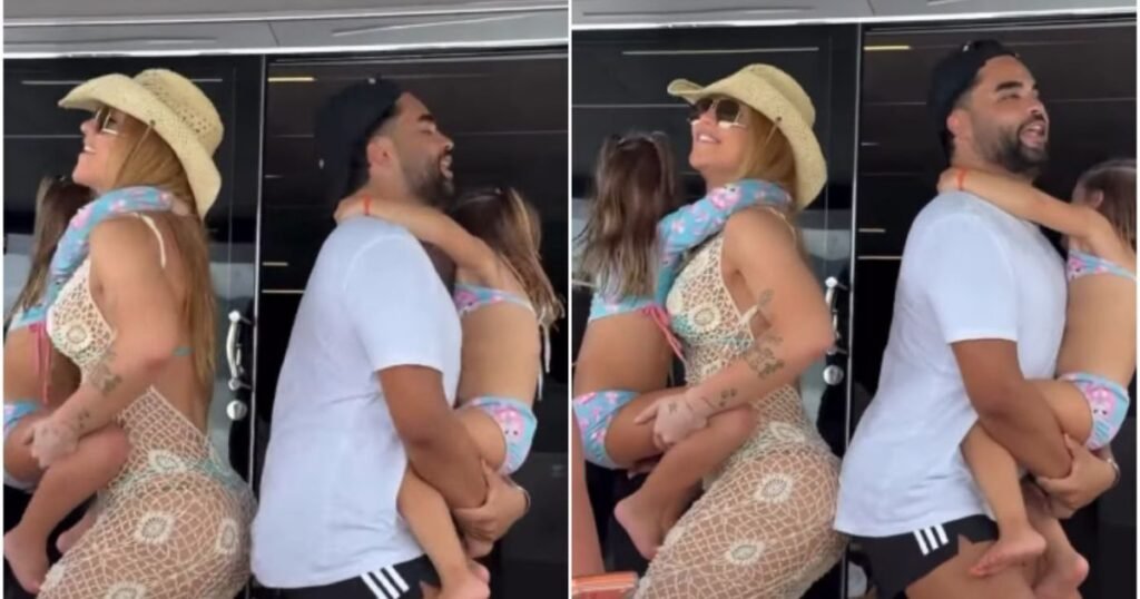 Em vídeo publicado nas redes sociais por Lidia Souza, amiga de Virginia, a influenciadora apareceu com Maria Flor, 3, no colo, enquanto Lucas Guedez, melhor amigo dela, segurava Maria Alice, 4, ao som de “Tropa do Chapelão”, parceria da Boiadeira com Diplo.